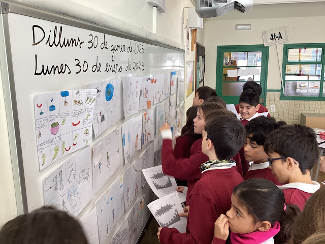 La primera part ha estat d'investigació: buscant informació amb les iPads, hem omplert una fitxa amb informació sobre la fauna i flora que hi ha en el nostre ecosistema, el tipus de sòl o de roques, si hi ha aigua o quines cadenes alimentàries s'hi formen. Després hem repartit entre tots els membres del grup el material que cal portar: una caixa de sabates, animals, plantes, fotografies per fer el fons, sorra... Finalment arriba el muntatge del diorama: un producte final on poder demostrar tot el que hem après.
